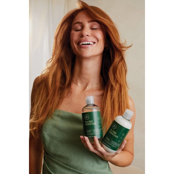 Η μέντα που περιέχεται στο Tea Tree Lemon Sage Thickening Shampoo περιέχει μενθόλη που υποκινεί την καλή κυκλοφορία του αίματος στο τριχωτό. Η καλή κυκλοφορία του αίματος είναι απαραίτητο συστατικό για την καλή υγεία και ανάπτυξη της τρίχας.